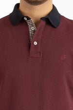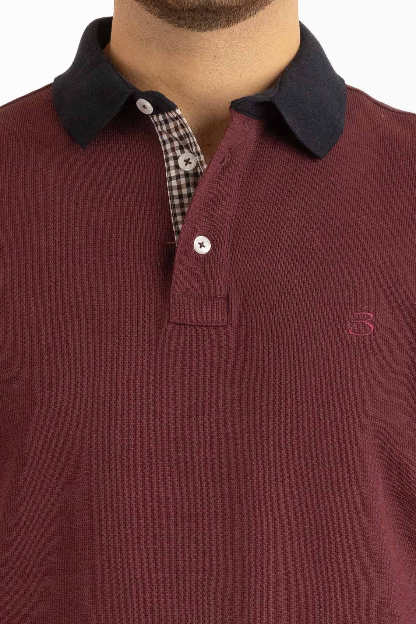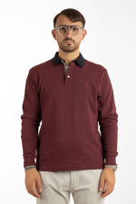 Long-Sleeved Warm Cotton Polo Shirt with Contrast Collar | 2 for €50 | Bordeaux
