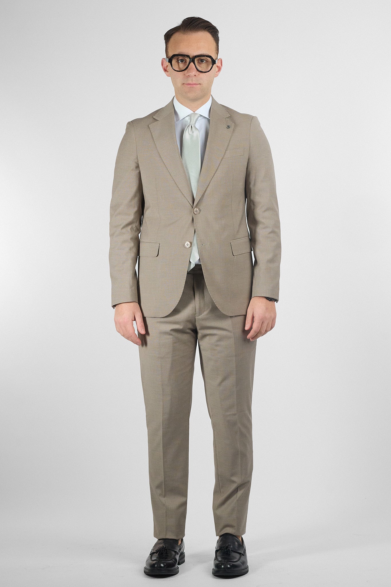 Abito due bottoni tessuto basic. Abito con pantalone modello slim. Il pantalone presenta tessuto extra interno per essere allargato ulteriormente fino a 4 centimetri.