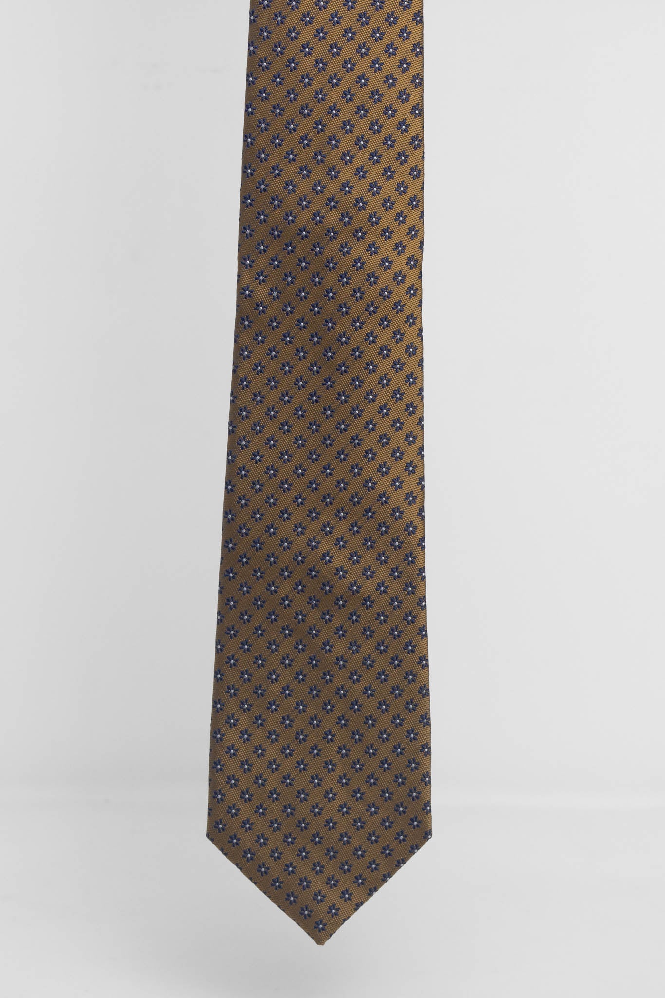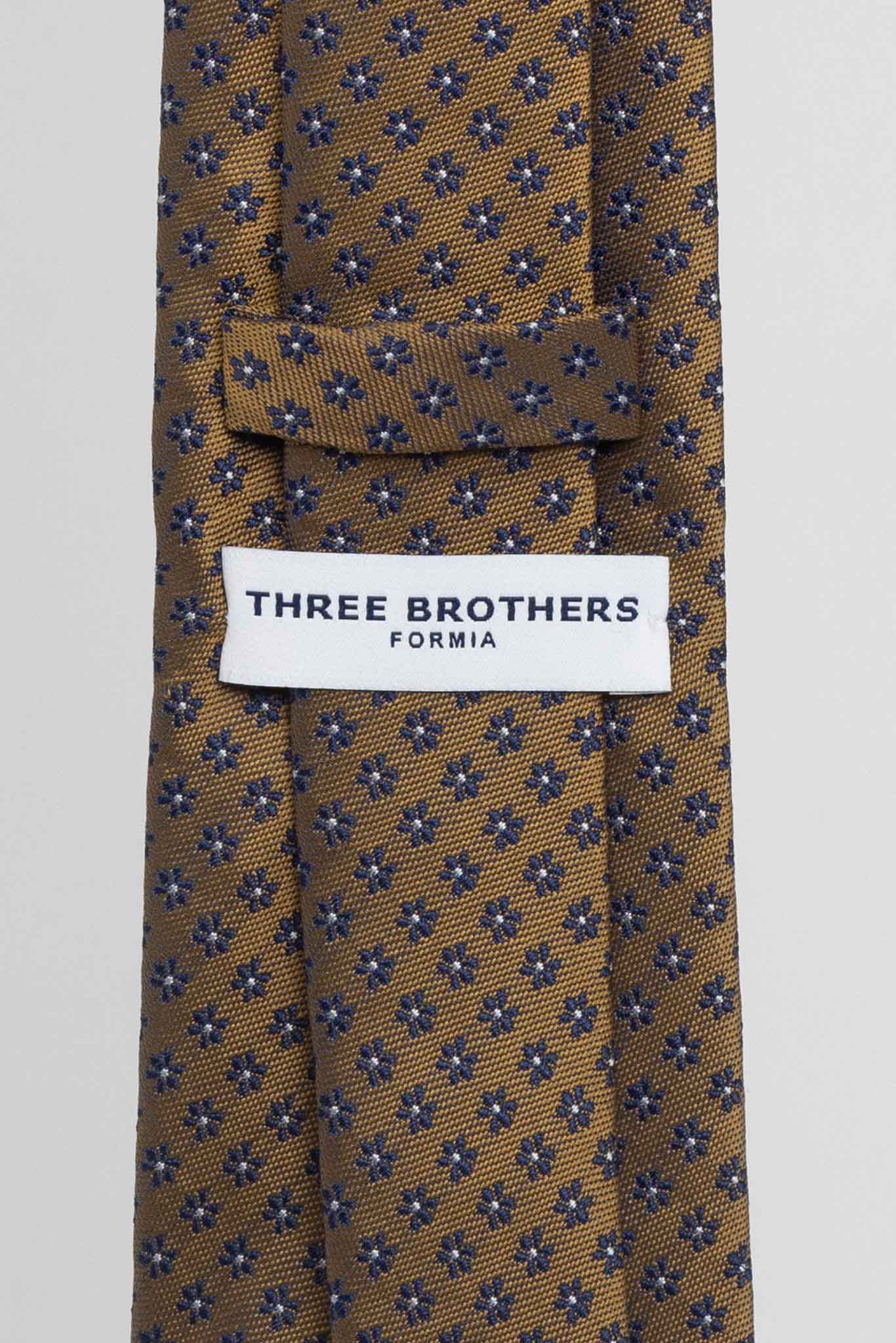 Cravatta Tre Pieghe Fantasia Fiore Fondo Ruggine e Blu | 2 Per €20