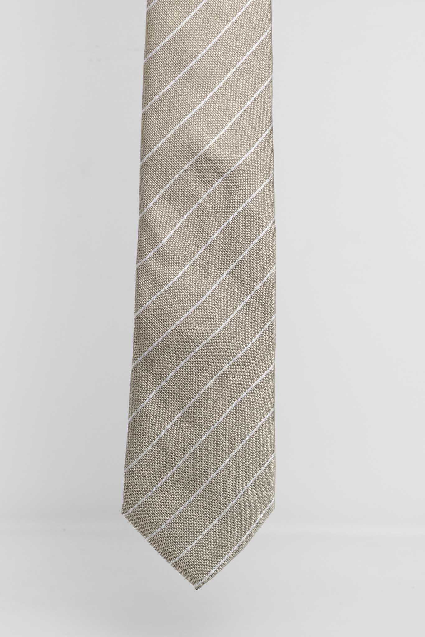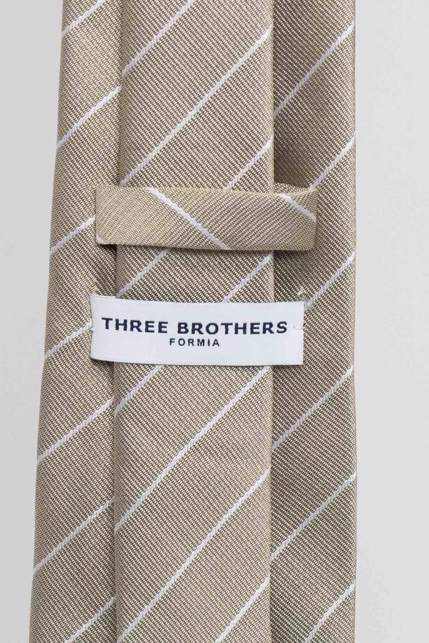 Cravatta Tre Pieghe Regimental Thin Fondo Beige Riga Bianca | 2 Per €20
