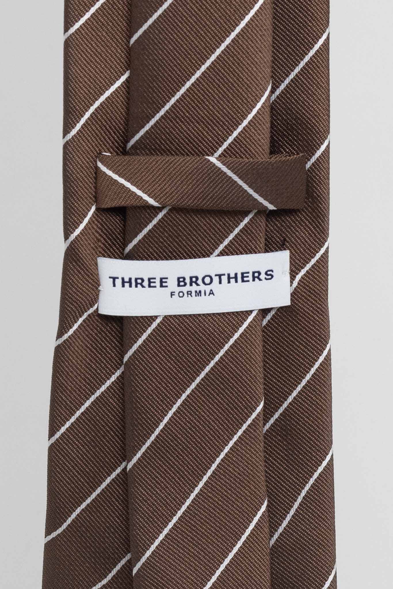 Cravatta Tre Pieghe Regimental Thin Fondo Marrone Riga Bianca | 2 Per €20
