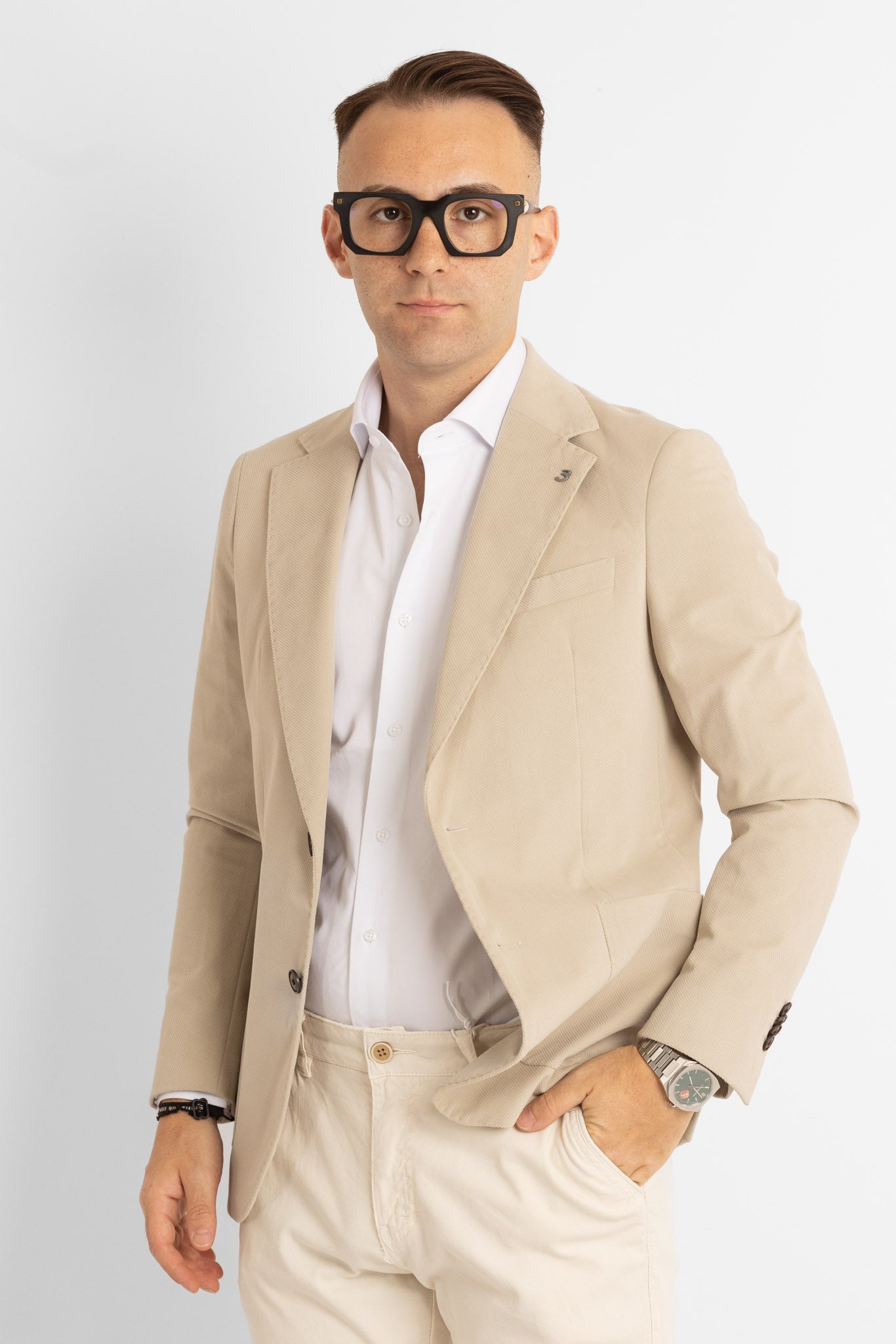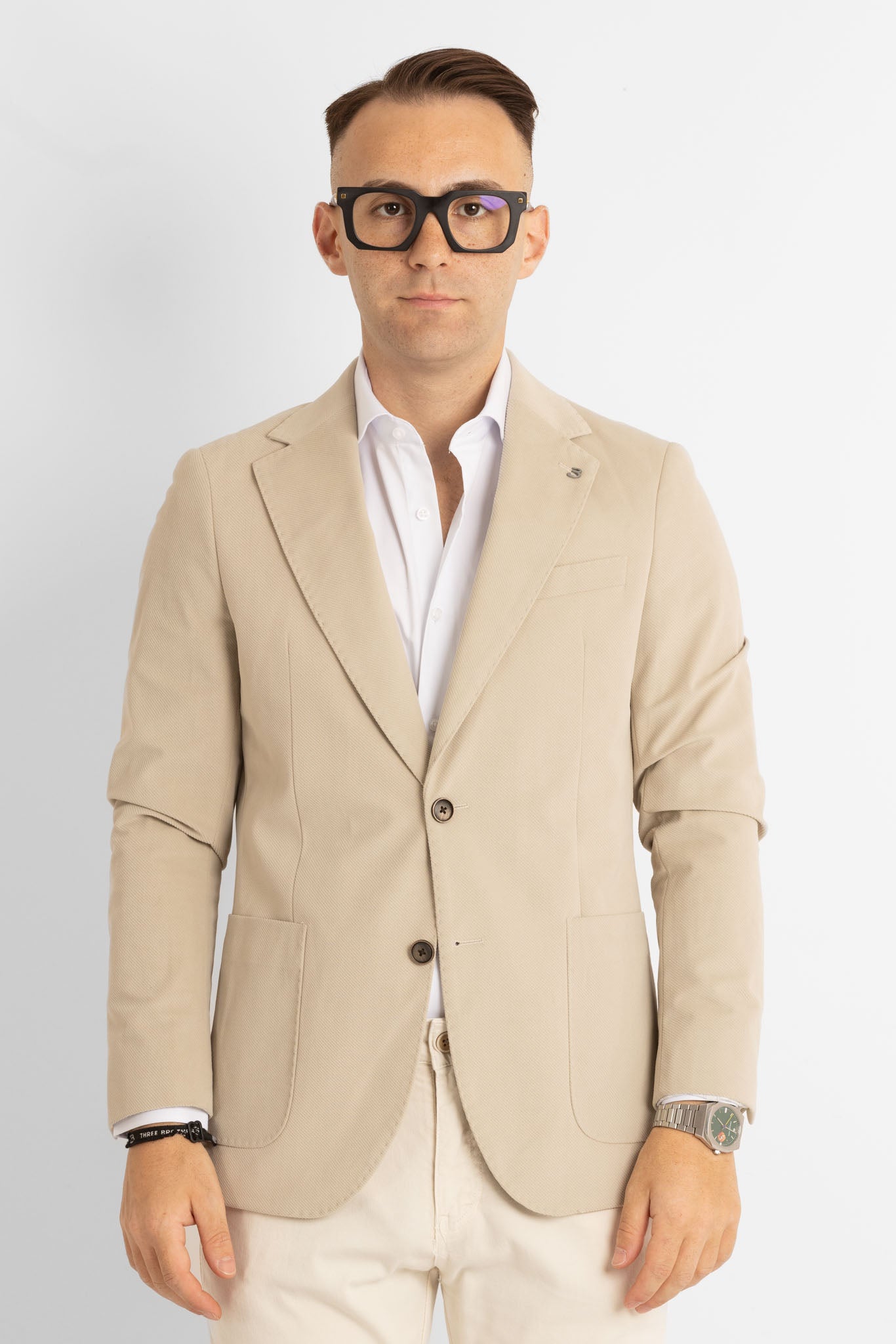 1. Close the jacket and measure from one side to the other at the height of the button (use the top button as a reference if the jacket has two buttons or the central one if it has three).