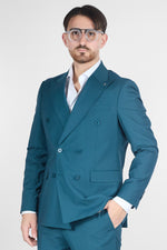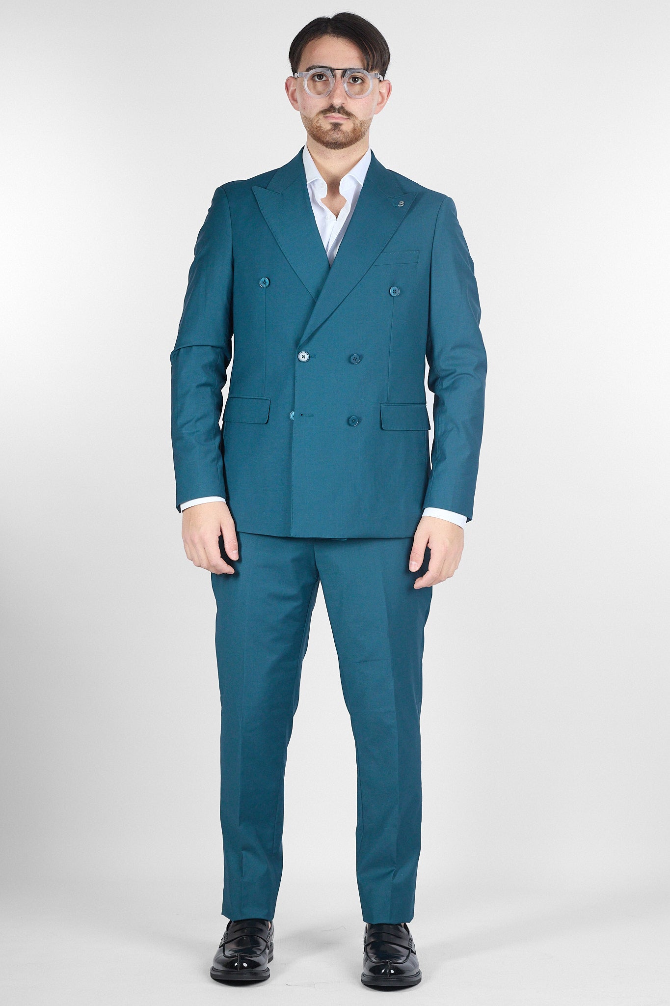 Abito doppio petto. Abito con pantalone modello slim. Il pantalone presenta tessuto extra interno per essere allargato ulteriormente fino a 4 centimetri.