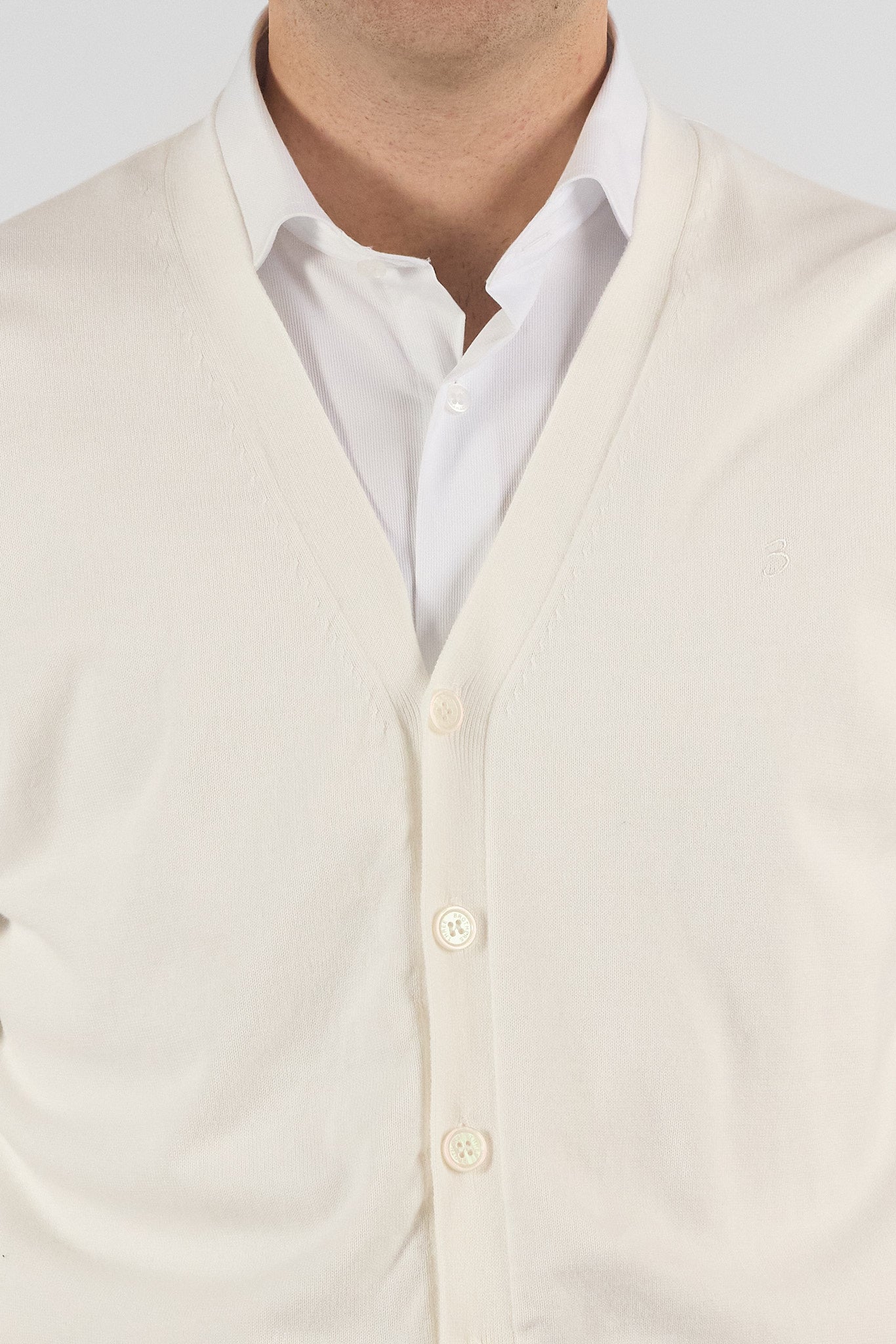 Cardigan a V con Bottoni Basic di Cotone 1107 | 2 per €50 | Bianco 15