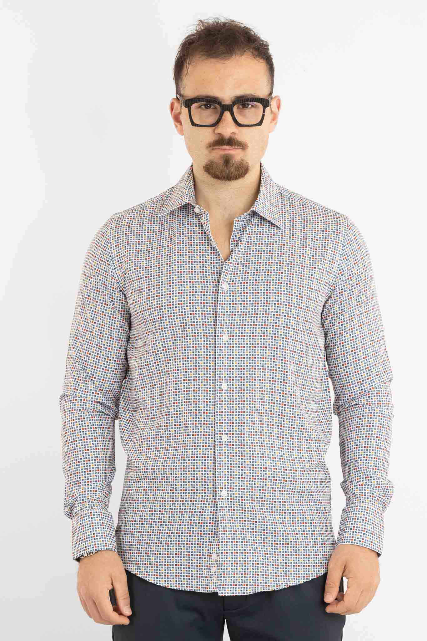 Chemise Active sans repassage, coupe ajustée, multicolore rouge et bleu | YD011