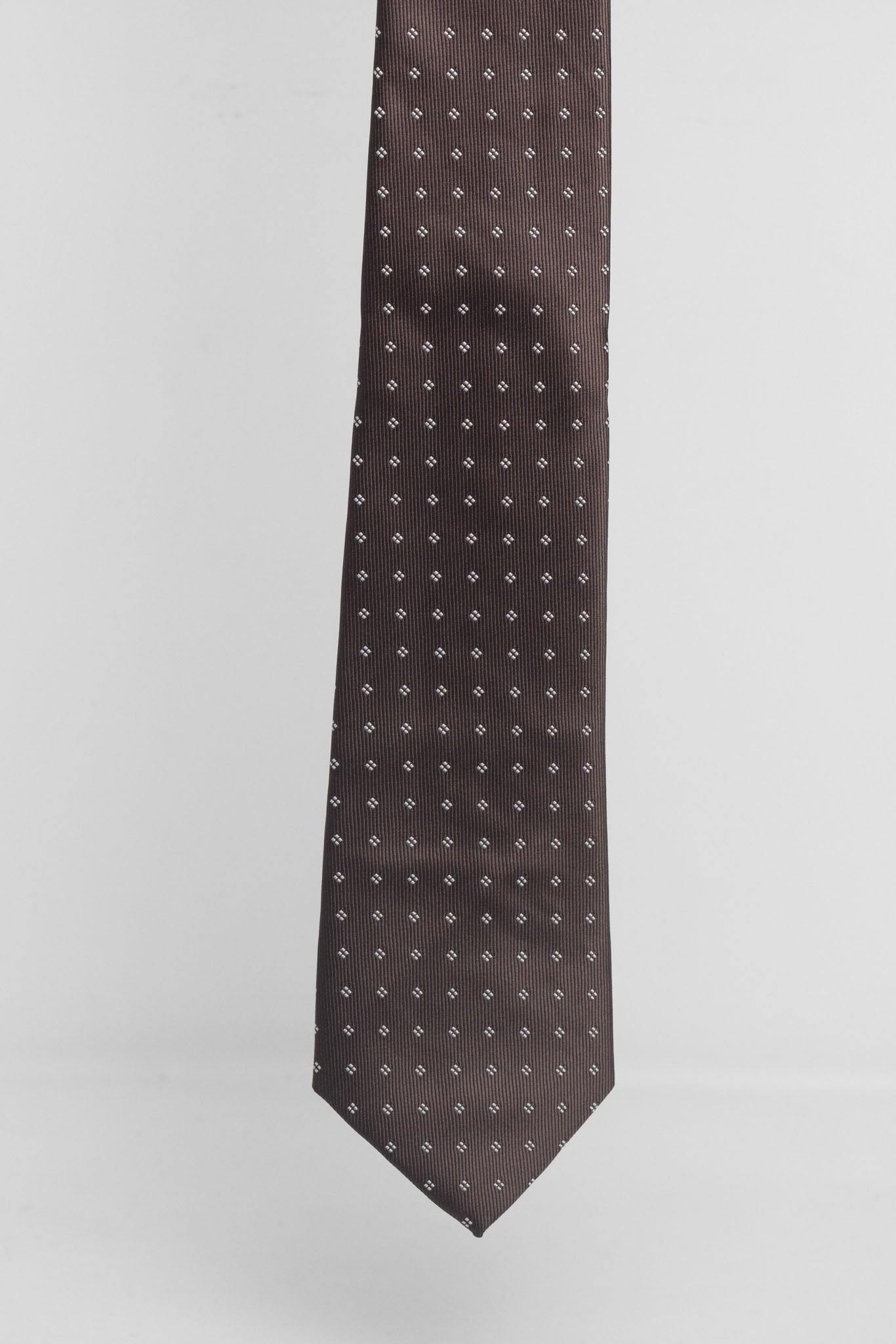 Cravatta Tre Pieghe Rombetti Bianchi su Fondo Marrone | 2 Per €20