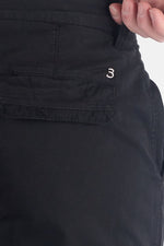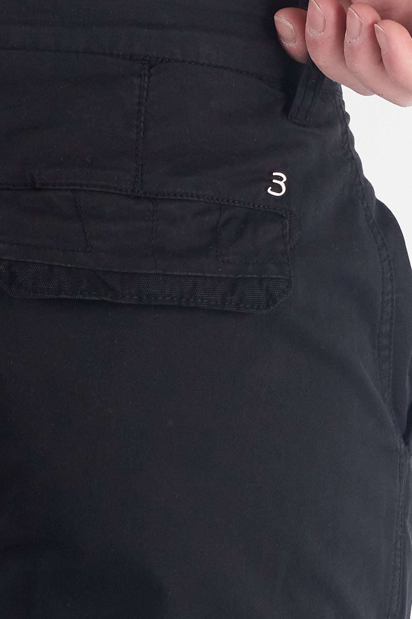 Pantalon cargo, longueur régulière, jambe étroite mais pas trop serrée.
