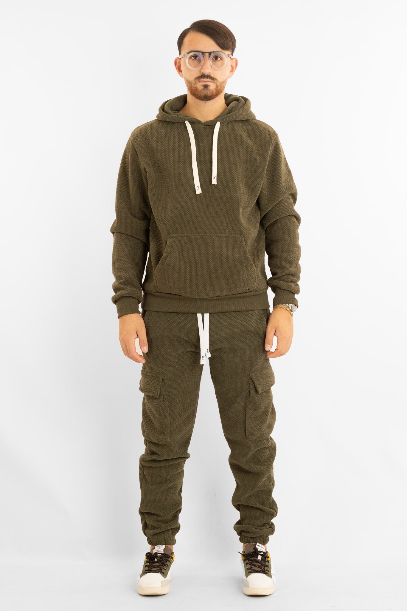 Sweat à capuche en polaire chenille | Vert militaire