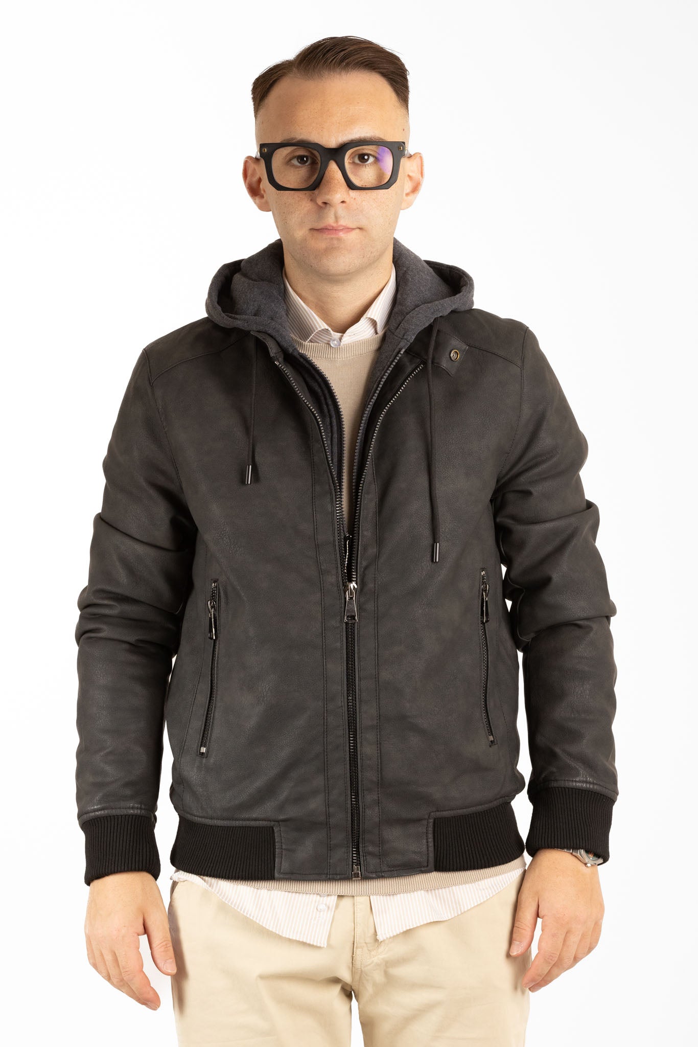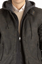 Blouson aviateur en similicuir avec capuche amovible | Noir
