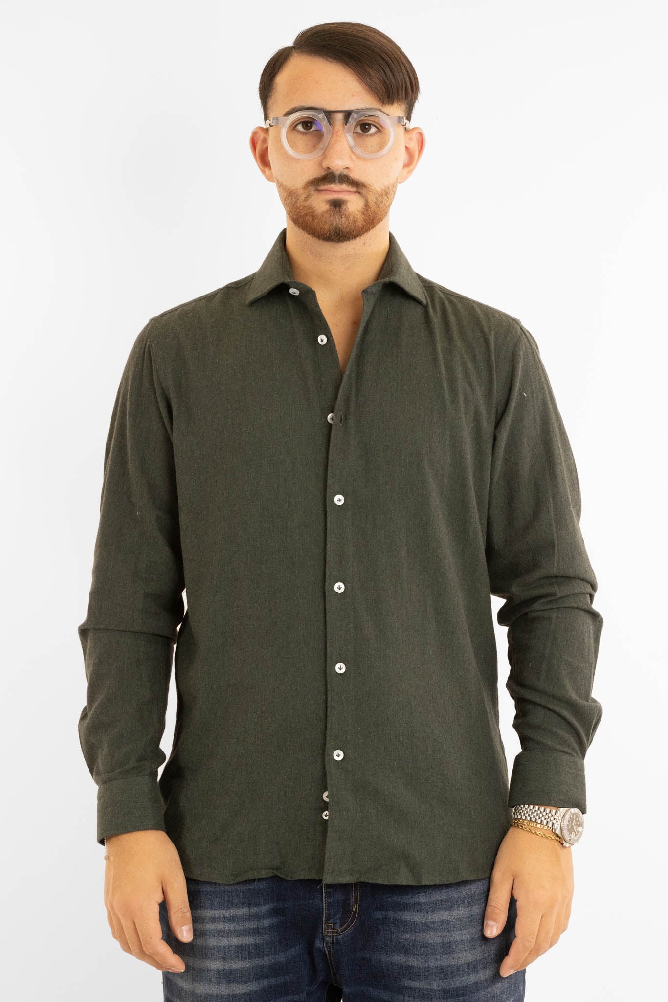 Chemise en flanelle semi-slim | Verte