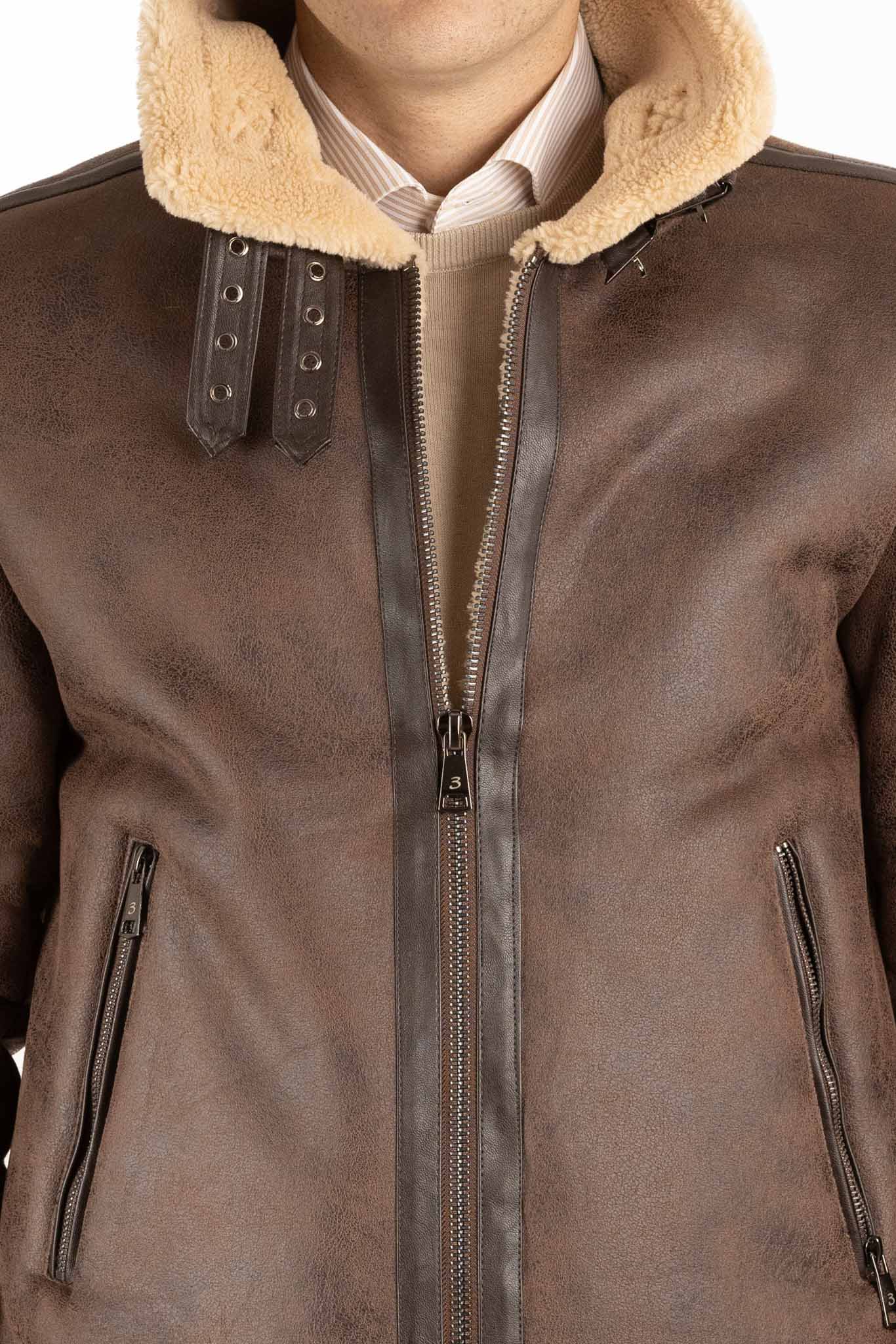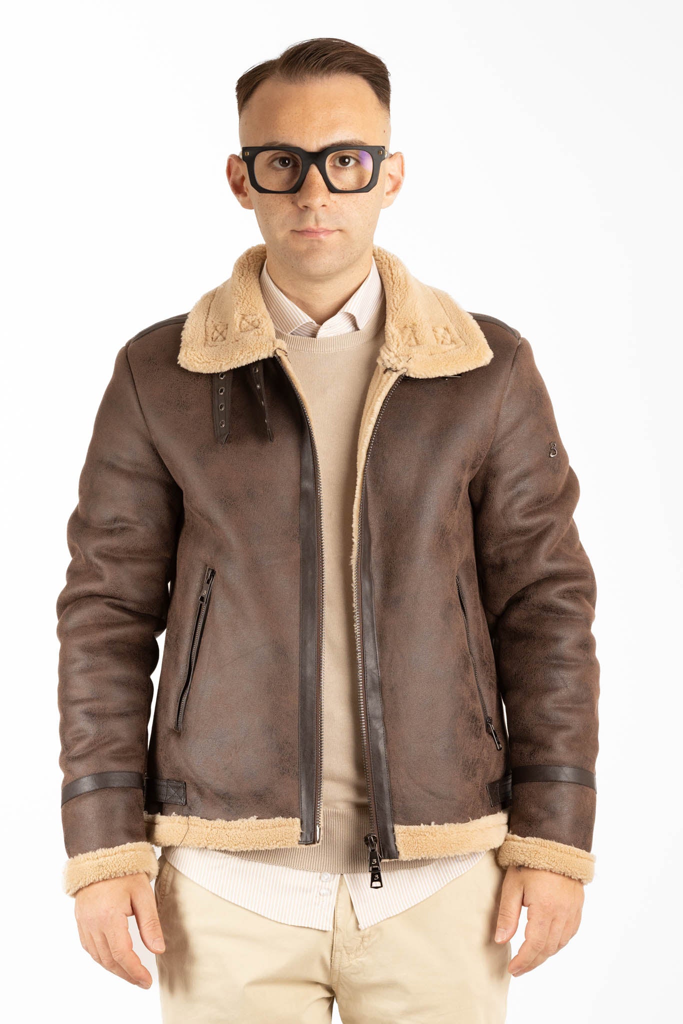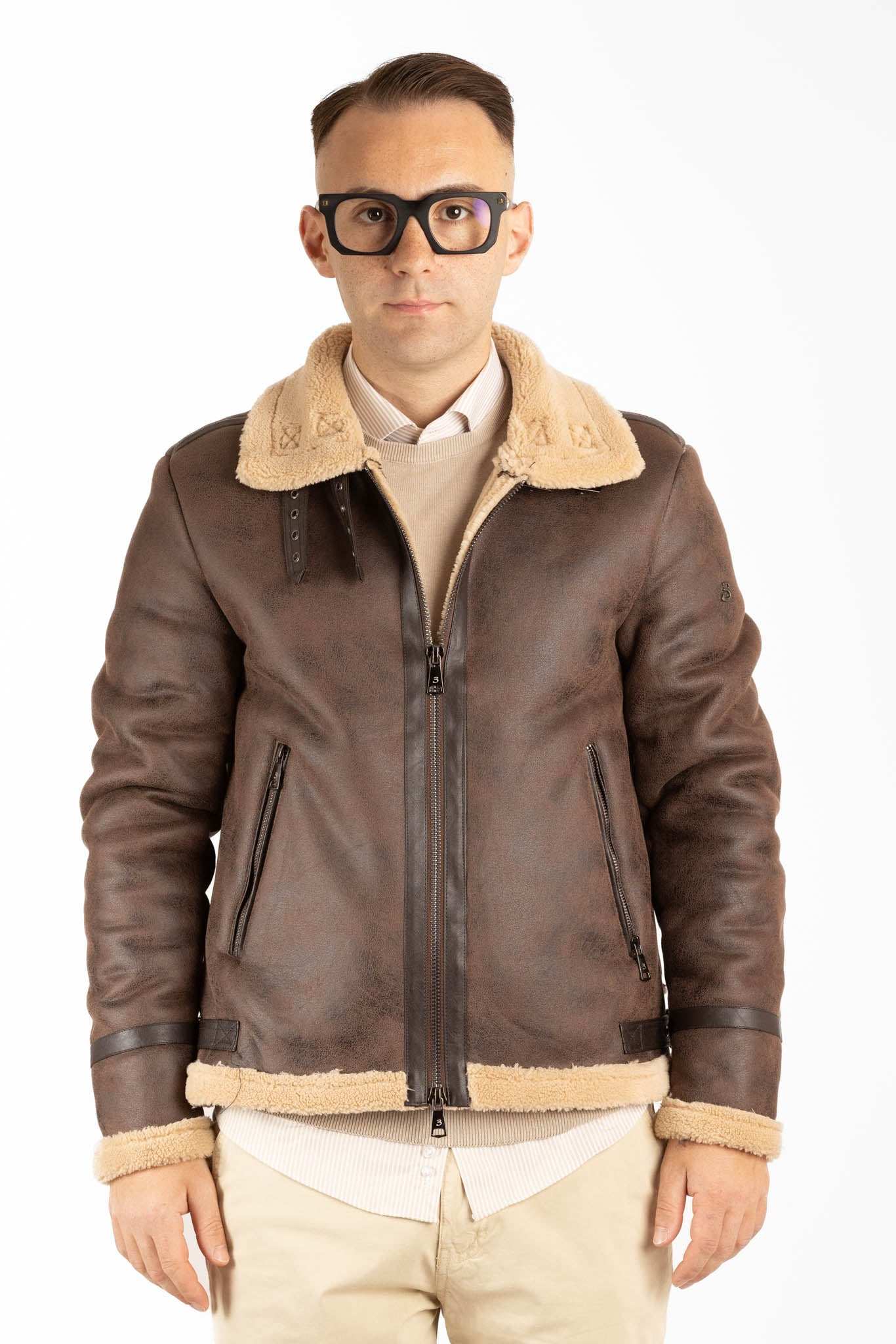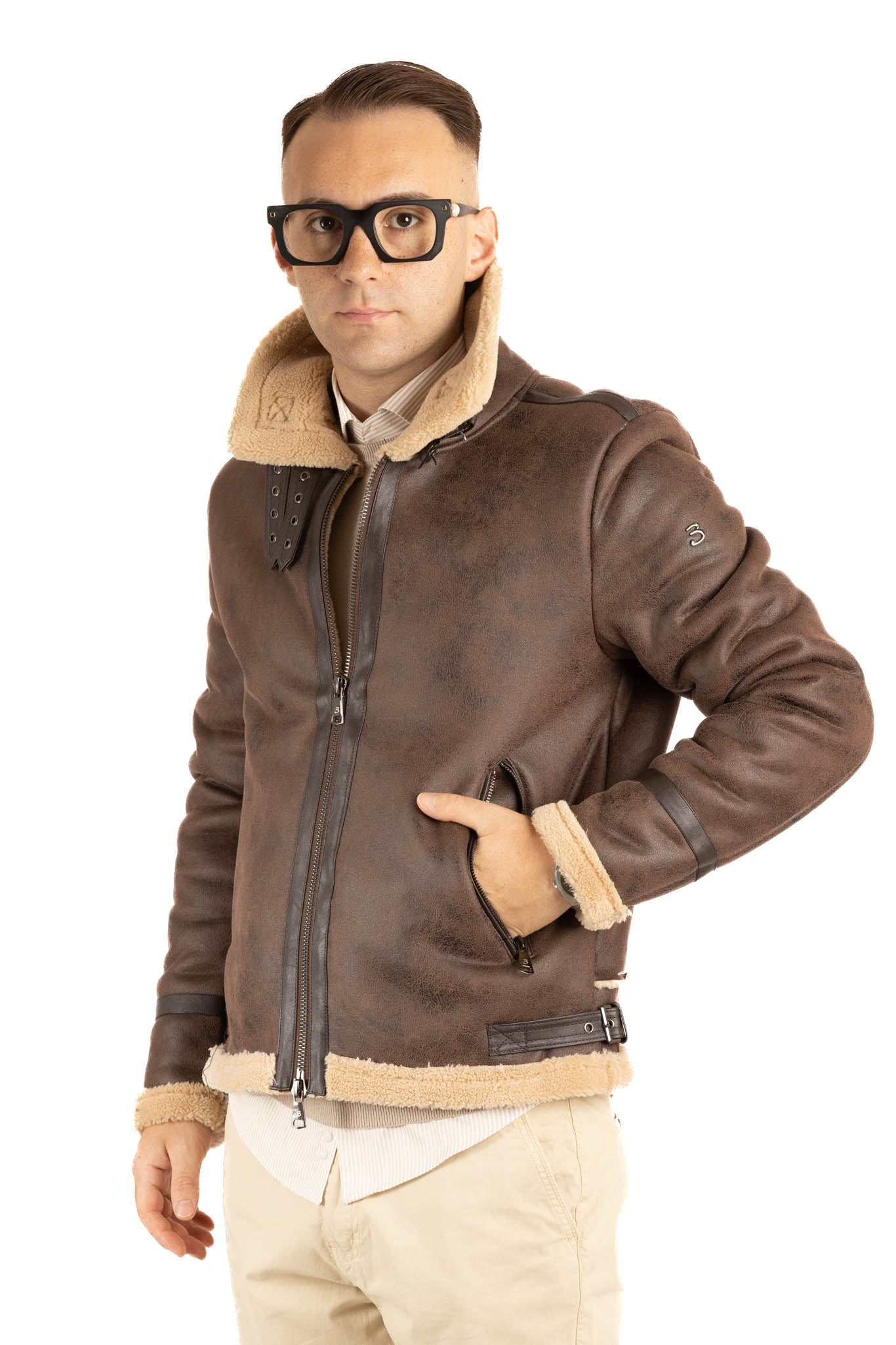Lunettes de soleil aviateur en peau de mouton écologique | Marron foncé