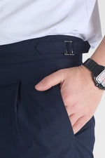 Pantalone Monte Carlo con Fibbia Laterale e Pinces | Blu