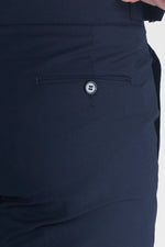 Pantalone con risvolto alto sul fondo, lunghezza regolare, tessuto elasticizzato ma allo stesso tempo elegante, fibbia laterale e pinces per extra comfort e morbidezza di gamba