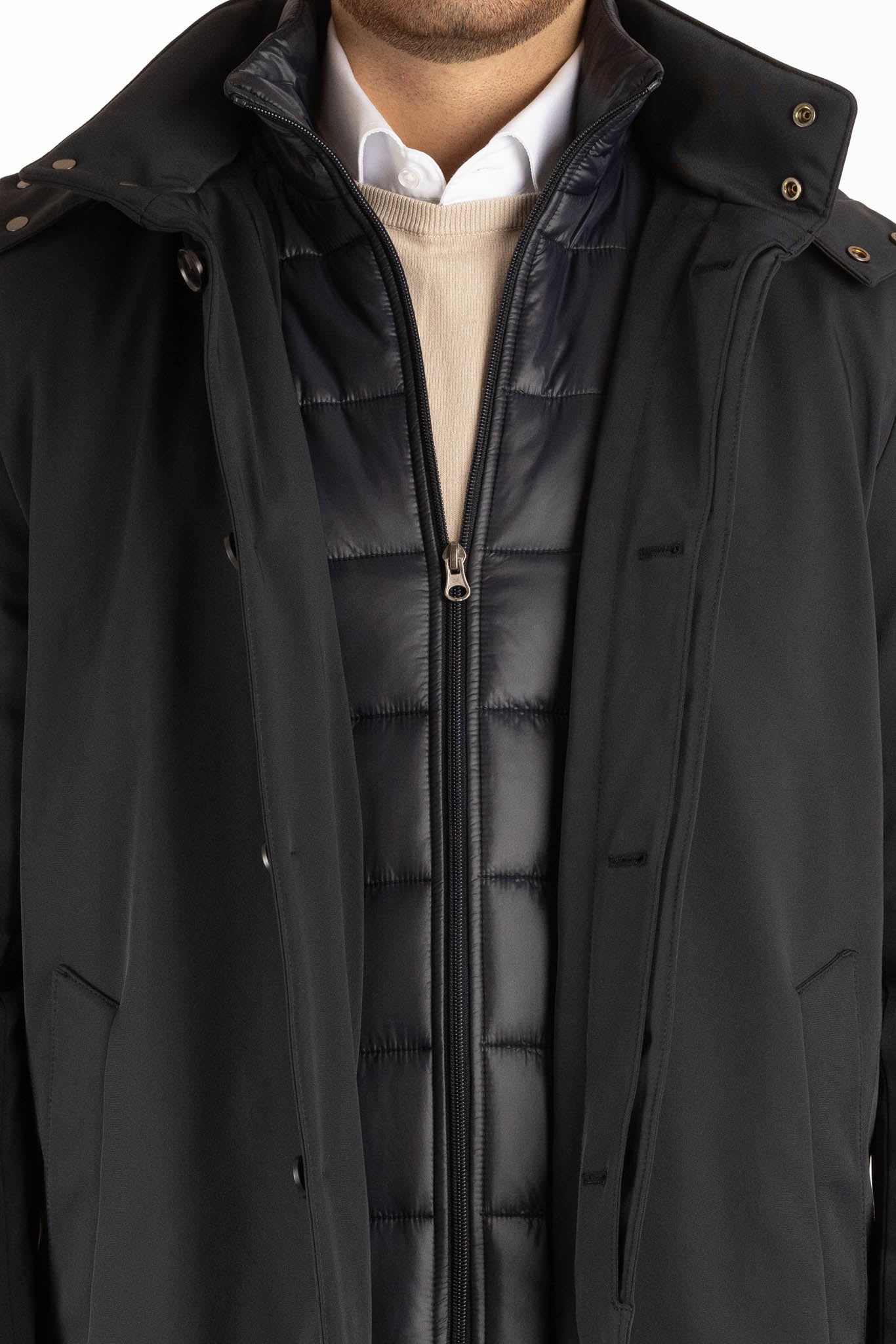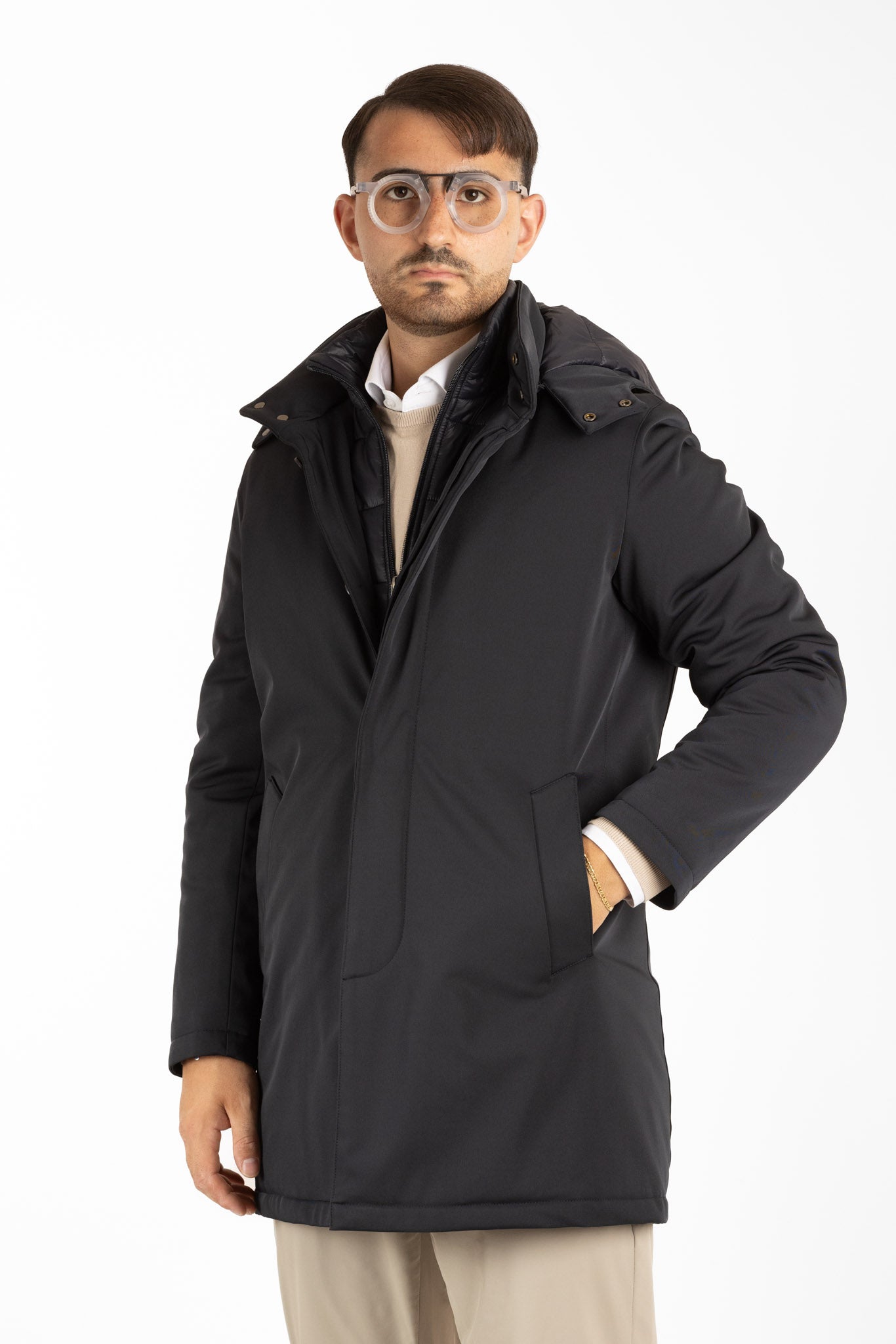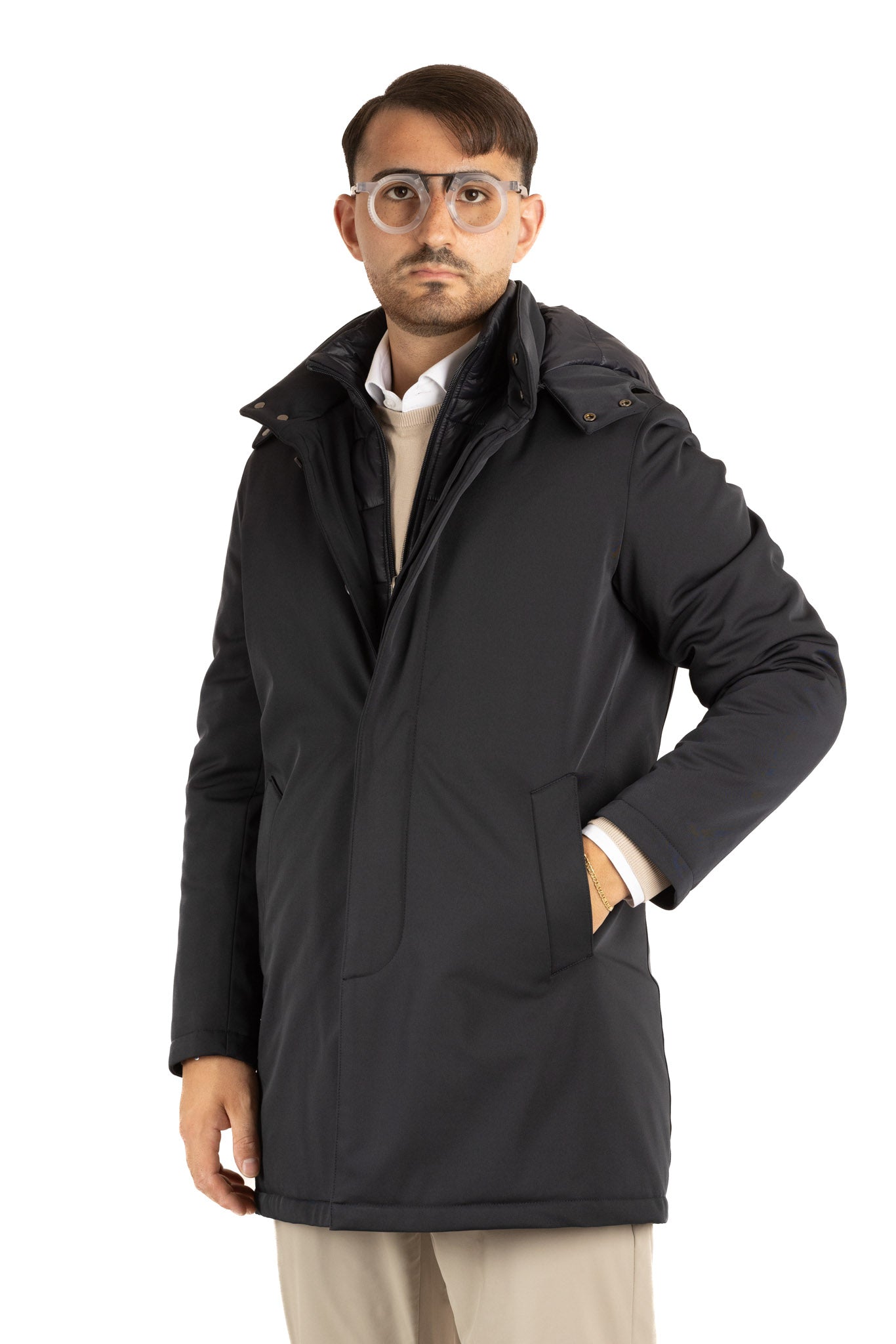 Trench avec capuche amovible. Pratique, élégant et décontracté à la fois ! Très chaud et très confortable, vous ne le sentirez même pas en le portant.