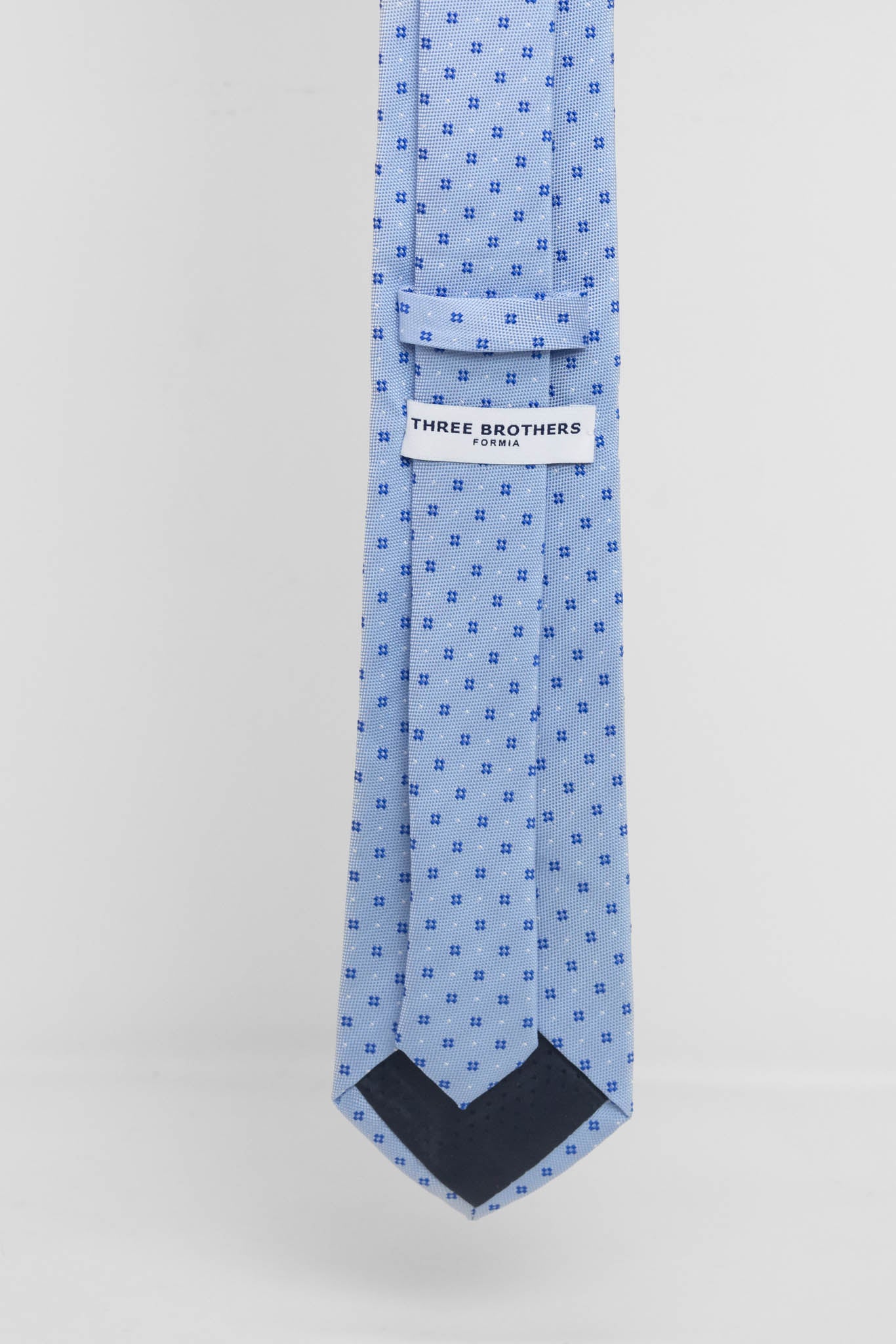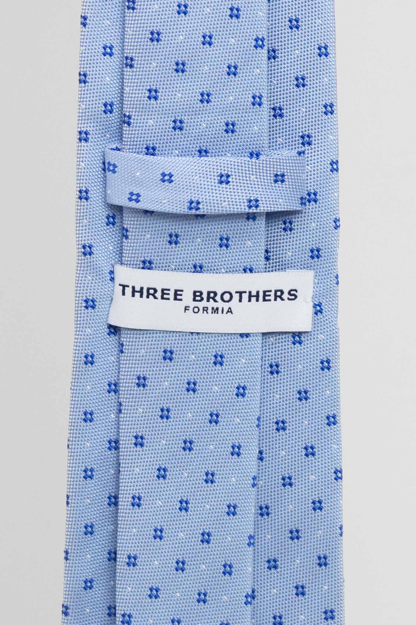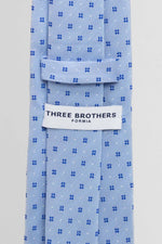 Cravatta Tre Pieghe Fantasia Unica Fiorellini Blu Fondo Celeste | 2 Per €20