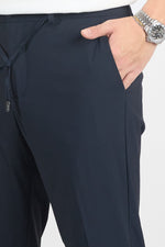 Pantalone con piega con risvolto e elastico con laccetto in vita