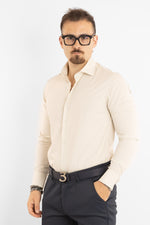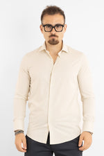Camicia No Stiro Slim Doppio Ritorto Riga in Tinta 5185 | Beige
