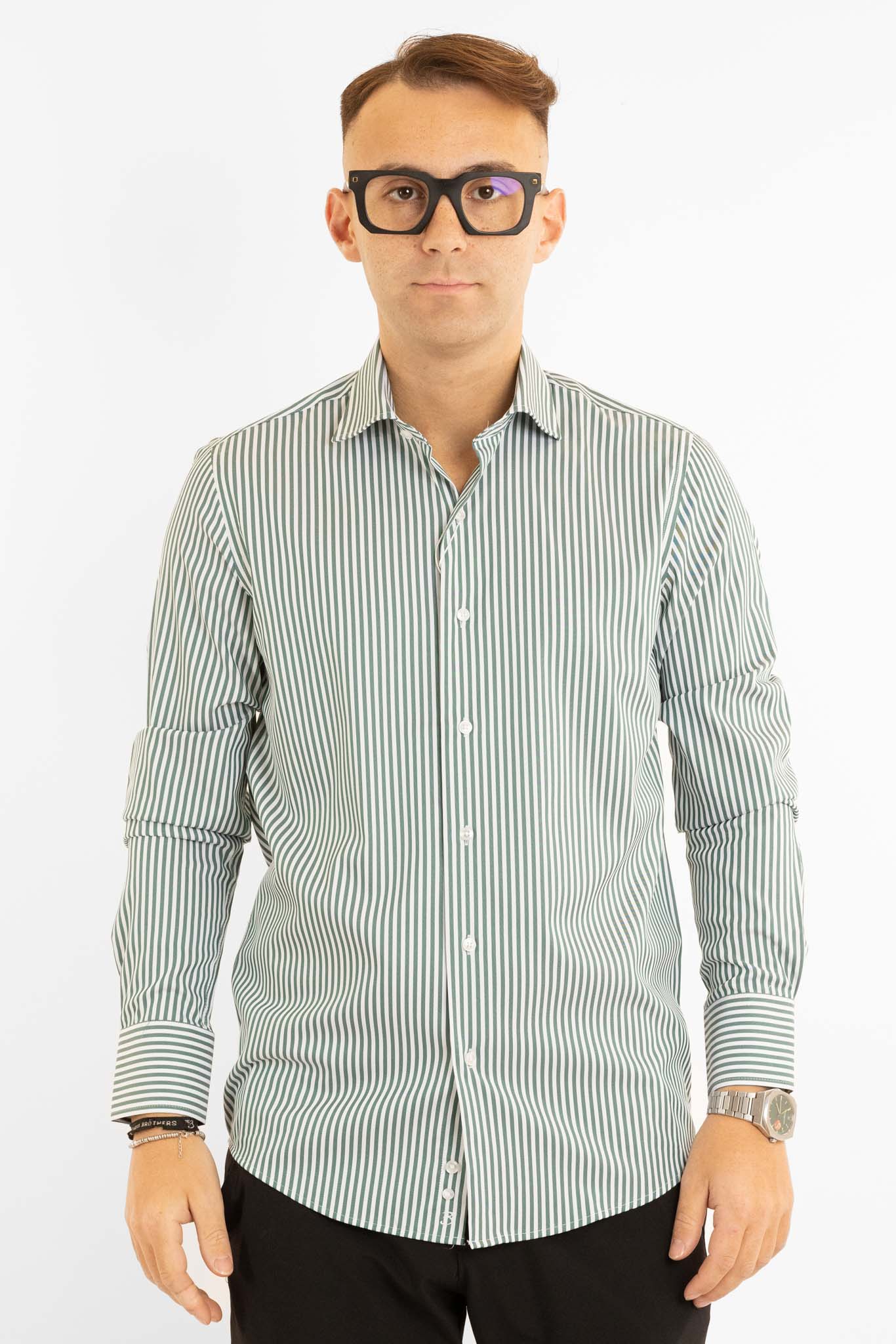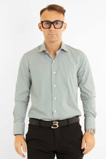Camicia No Stiro Slim Doppio Ritorto Riga Larga | Verde
