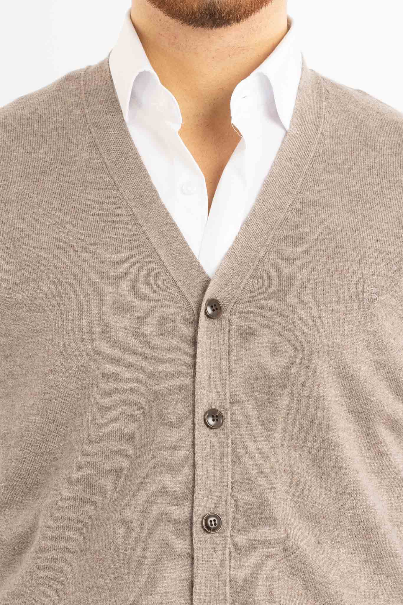 Cardigan Gilet a V con Bottoni Misto Lana 850 | 2 per €50 | Tortora