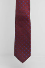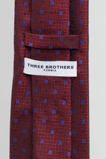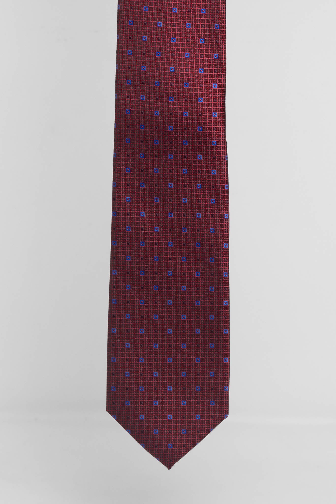 Cravatta Tre Pieghe Fantasia Unica Fondo Bordeaux Quadratini Azzurri | 2 Per €20