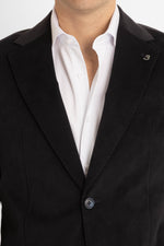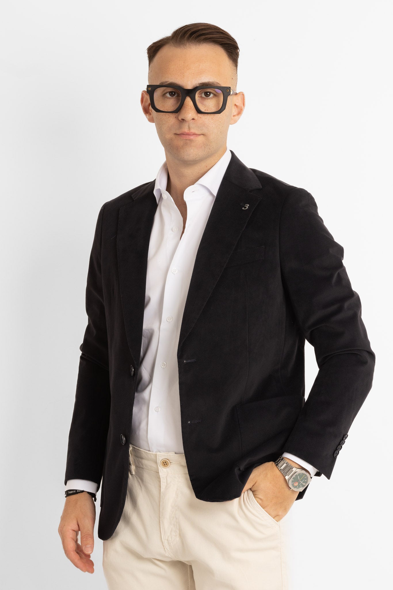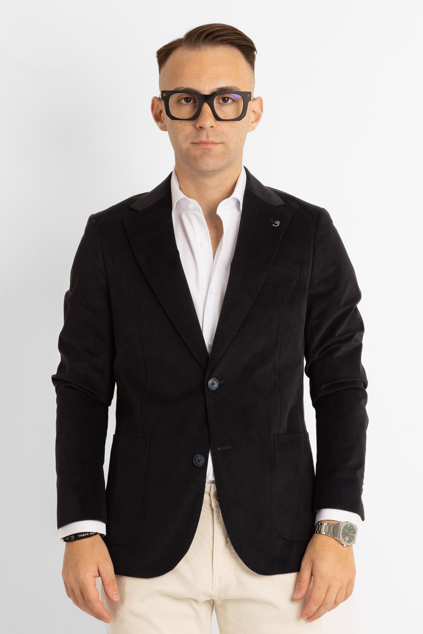 Giacca da spezzato elasticizzata in velluto, calda e confortevole, dal taglio moderno e versatile. Perfetta per look casual-chic o per completare outfit eleganti con un tocco di praticità