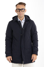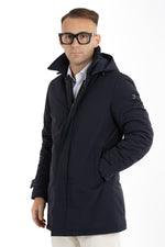 Trench Tessuto Tecnico Imbottito con Cappuccio Staccabile | Blu