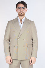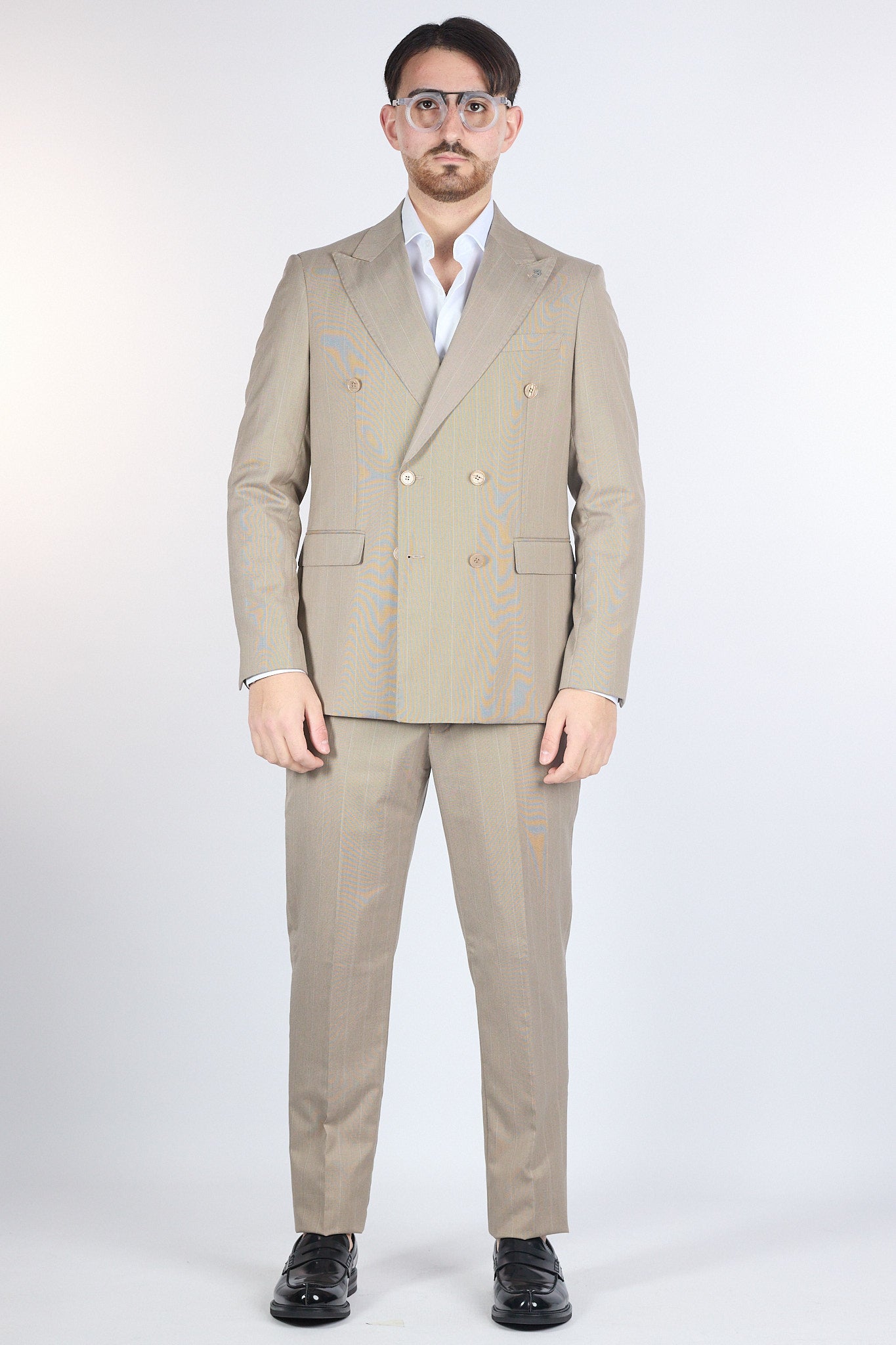 Abito doppio petto. Abito con pantalone modello slim. Il pantalone presenta tessuto extra interno per essere allargato ulteriormente fino a 4 centimetri.