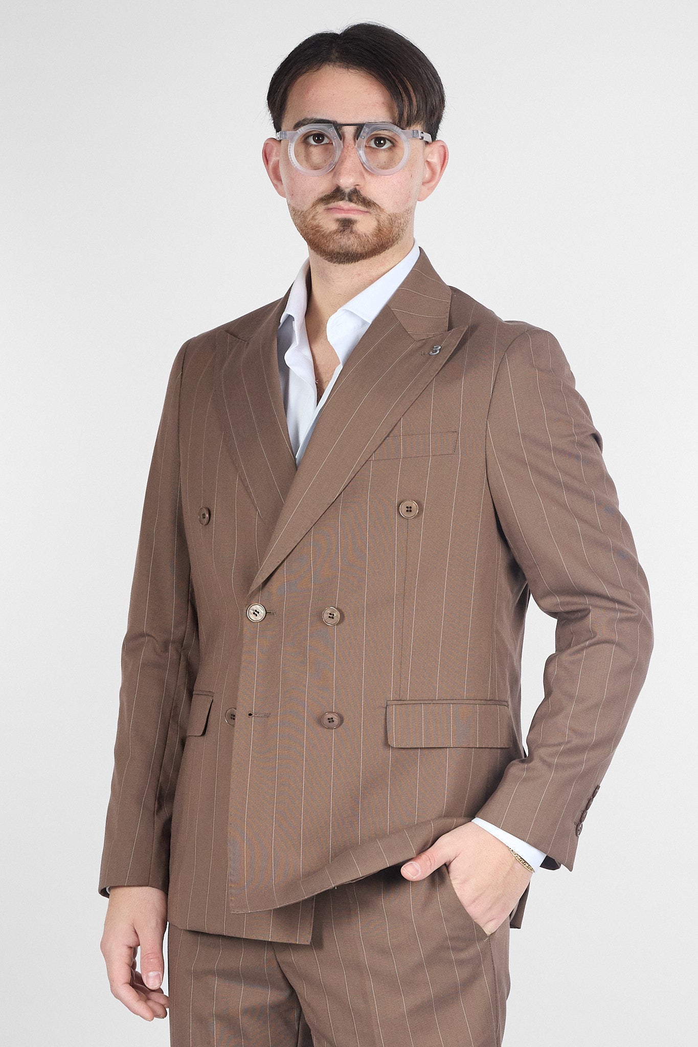 Abito Doppio Petto Gessato | Tabacco