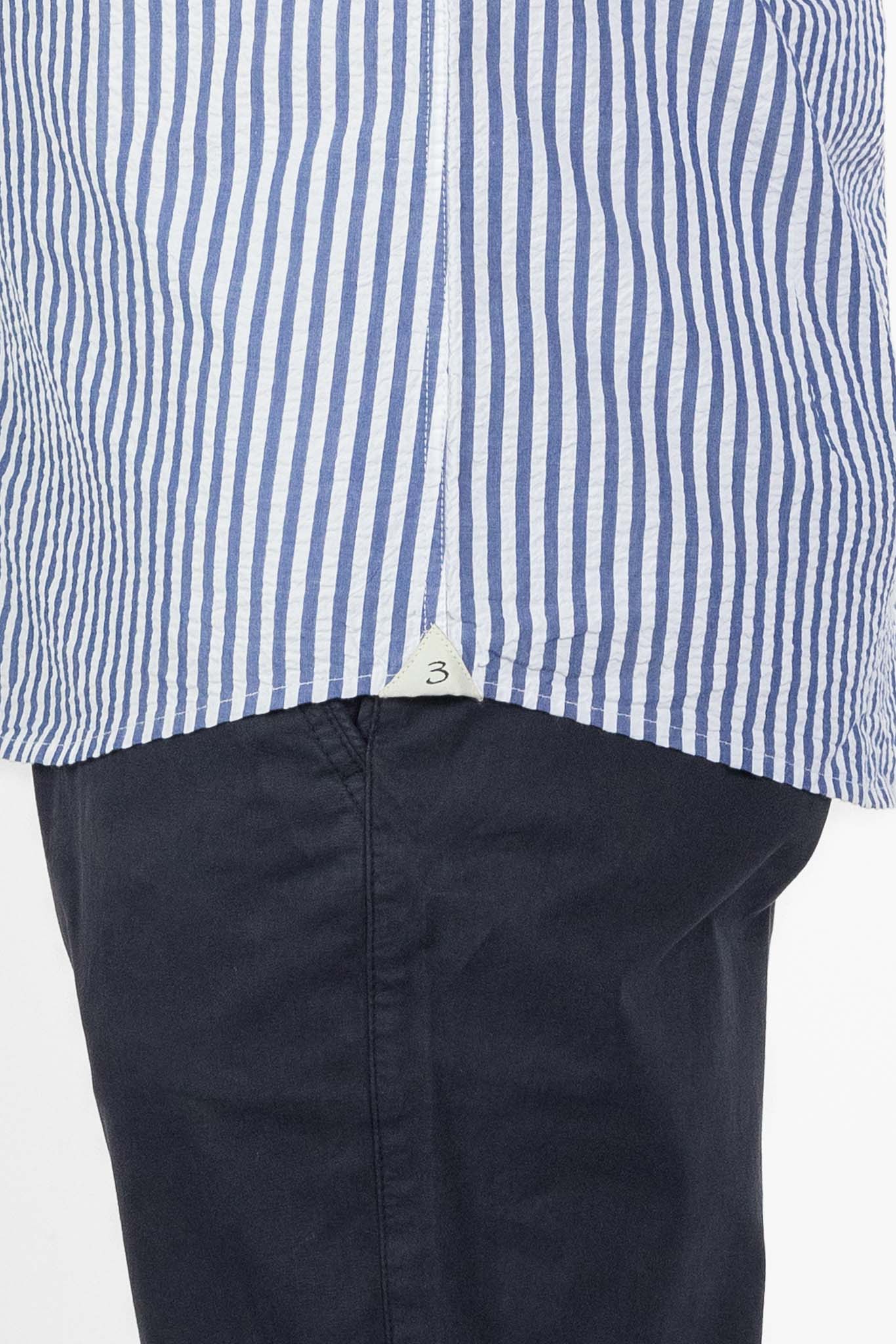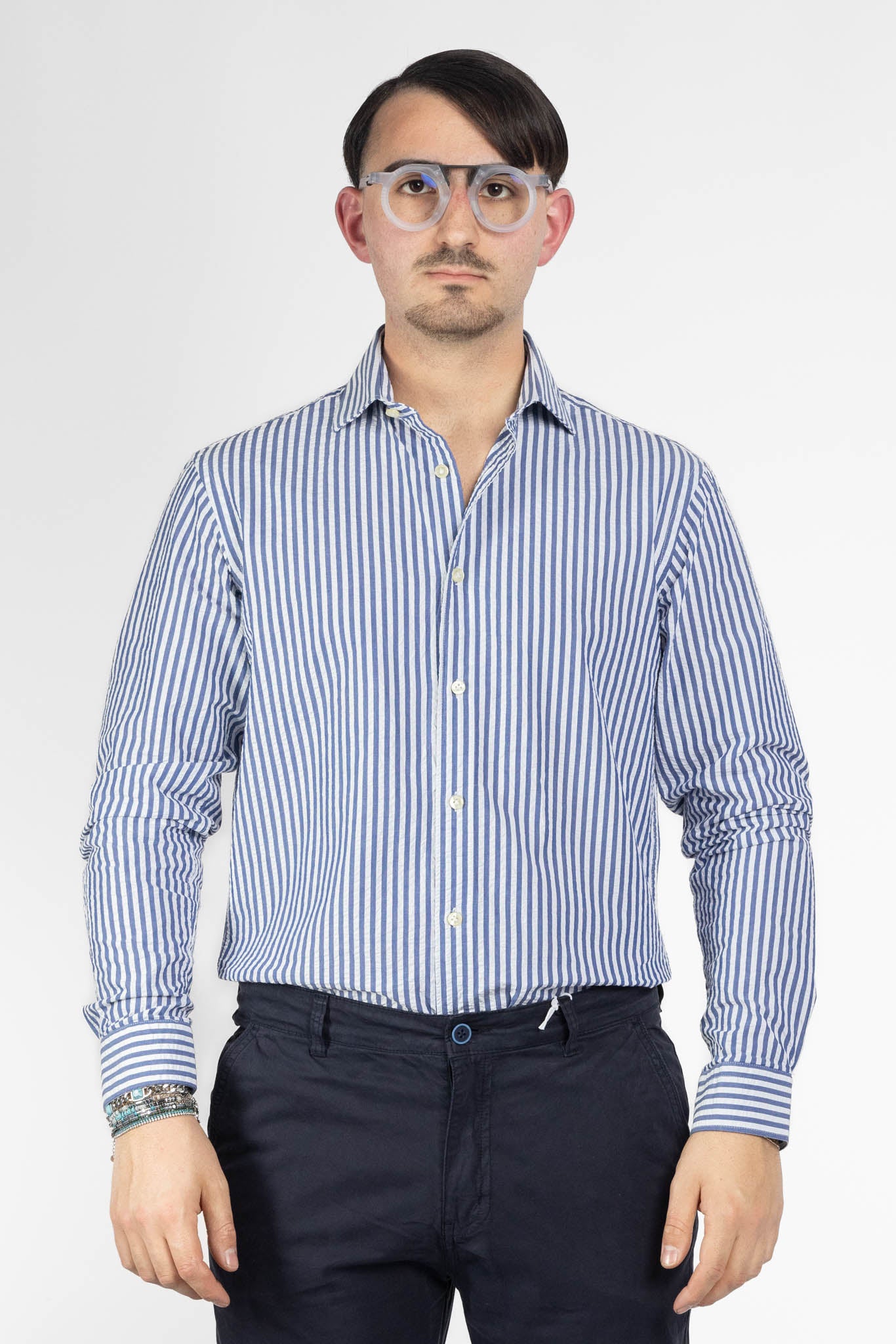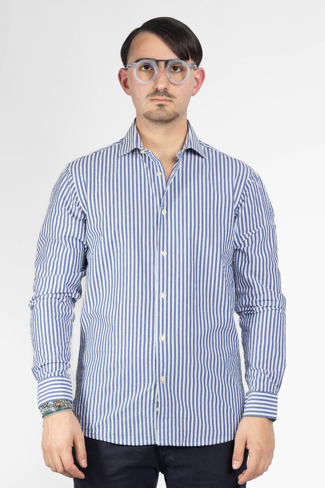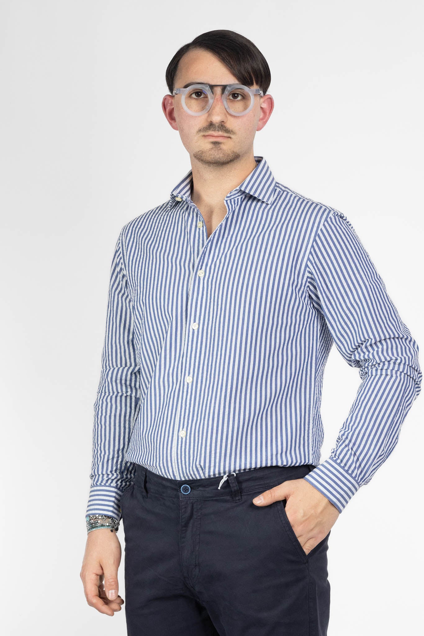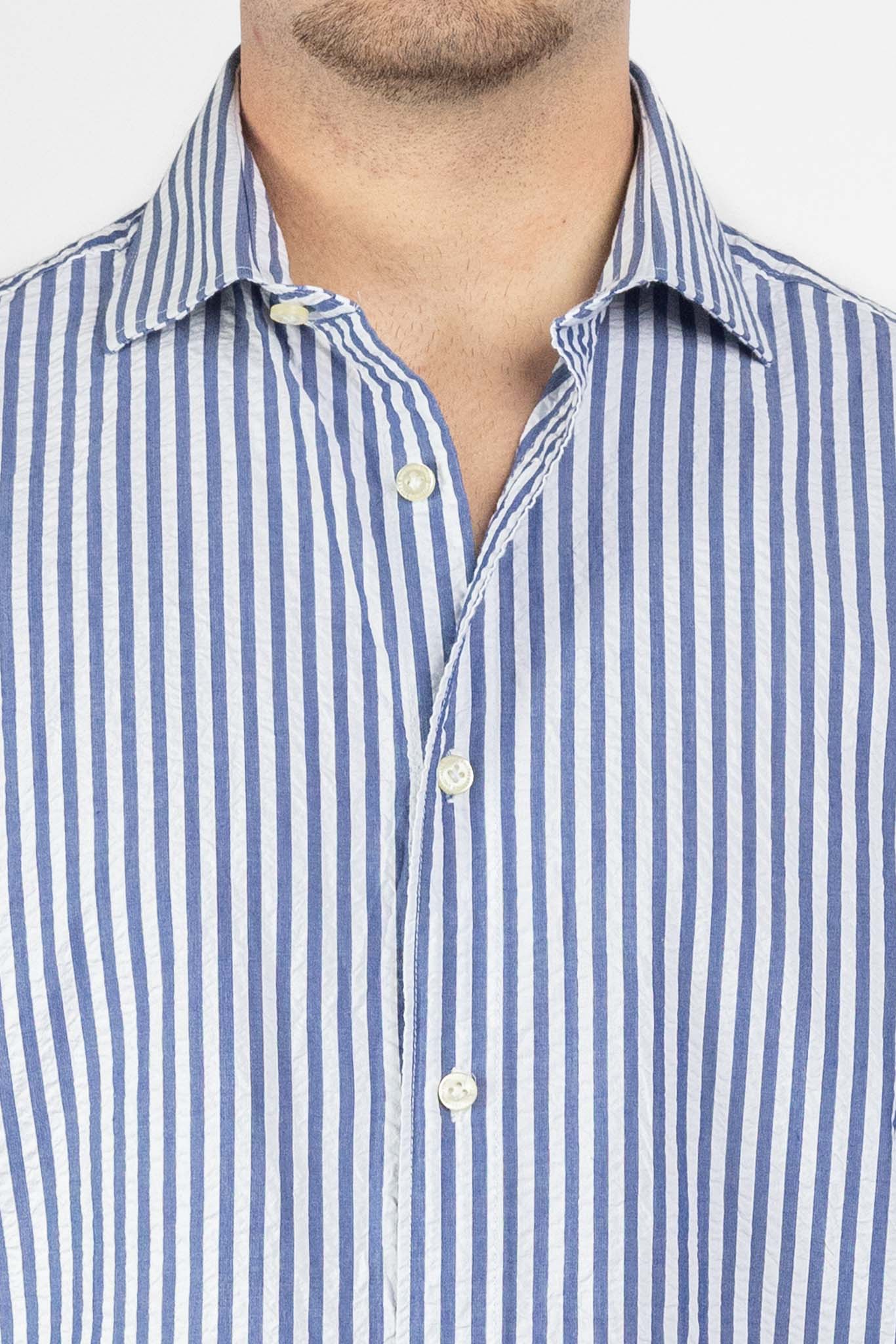 Semi Slim Shirt Seersucker Fabric Non-Iron | Wide Blue Stripe
