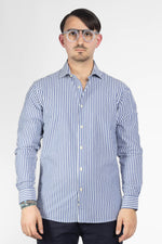 Pure cotton shirts with a semi-slim, non-tight fit. Striped and patterned, perfect for jeans or both sporty and classic trousers, Italian style, mother-of-pearl buttons, fly on the bottom, can be worn both outside and inside the trousers. Also combine it with a jacket and create a sublime outfit. Shipments within 24/48 hours