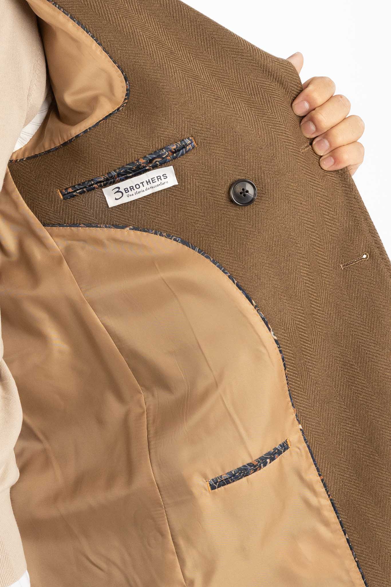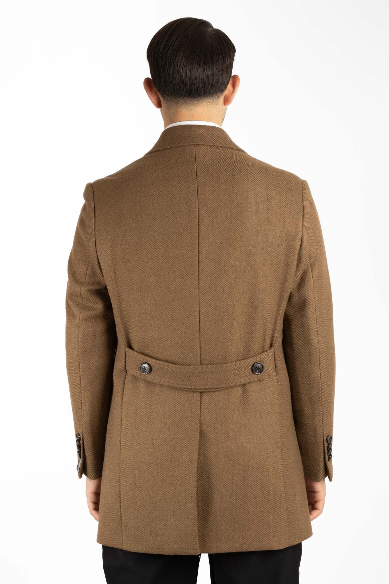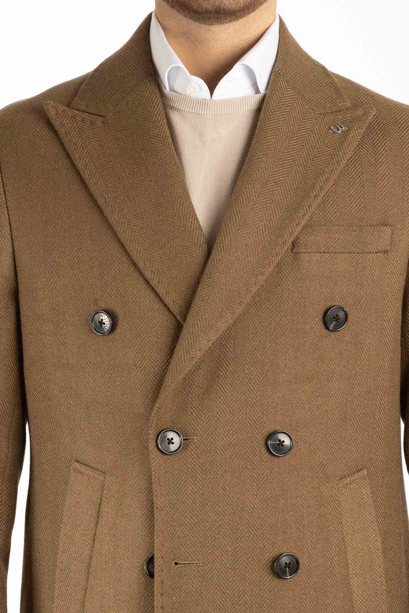 Double Breasted Herringbone Coat | Brown