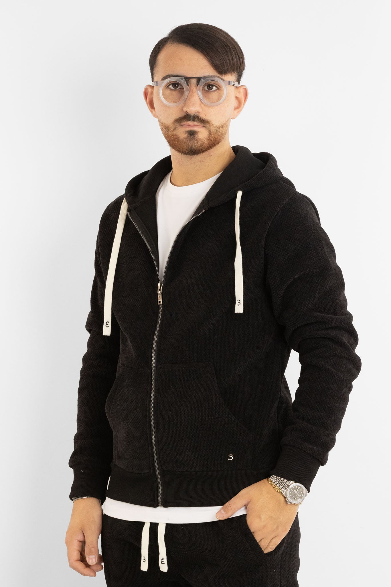 Chenille Zip-Up Hoodie | Black